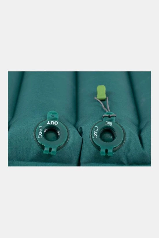 - De twee buitenste banen zijn iets hoger waardoor je stabiel ligt en niet van je mat rolt. Exped maakt gebruikt van twee platte ventielen. Zo kan het grondzeil niet beschadigen.